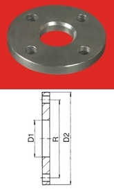 A steel flange used for the transition from a welded part of a water or heating distribution system to brass dismountable joints..