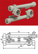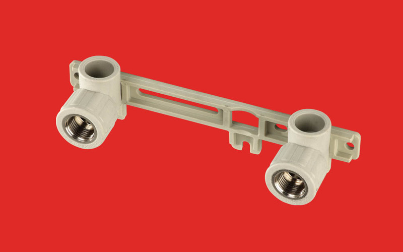 A fitting suitable for placing outlet fittings such as brass valves, cocks, shower heads and water combination faucets. Allowing for multiple connection pissoirs, for example. Available both in Gray and Green colors.